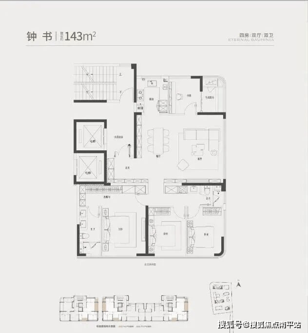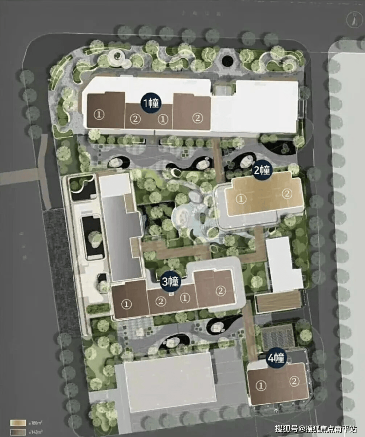 户型方面,主要推出建面约143㎡和180㎡两种,其中143㎡户型为项目主力,在 1、3、4 号楼均有分布;180㎡大户型则仅布局在2号楼内。从定位来看,项目的主要目标客群以改善型购房者为主。