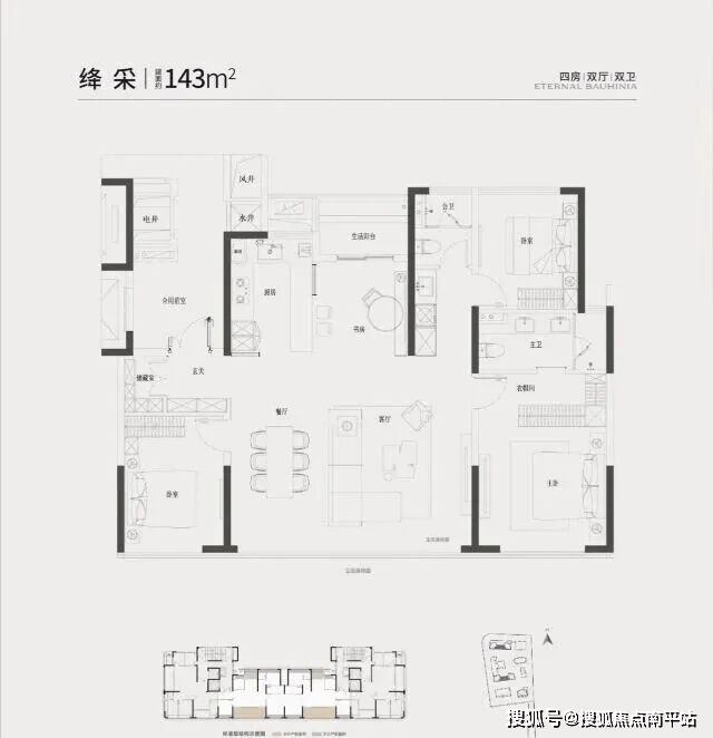 户型图已出炉,其中建面约143平的户型有两种,一种是楼栋边套的,另外一种是单元拼接处的。
