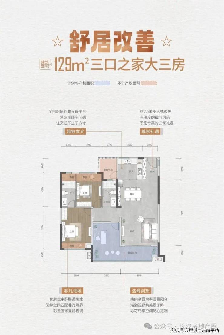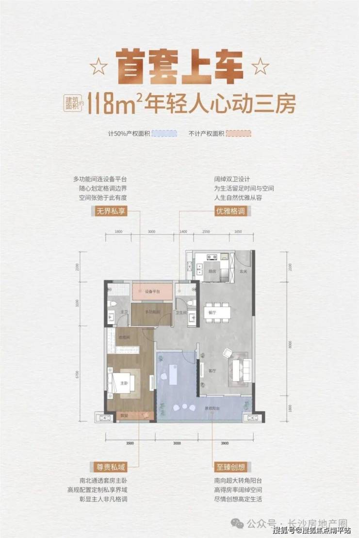 118平: 户型是很中规中矩的动静分区格局, 缺点 :有过道的浪费面积,厨房旁边不带生活阳台, 降低了 放置杂物和厨房 通风的价值 ,新房市场上常见的户型格局,但同比往期的房子得房率是很明显的提升,以往这种户型得房率平均在85%左右。
