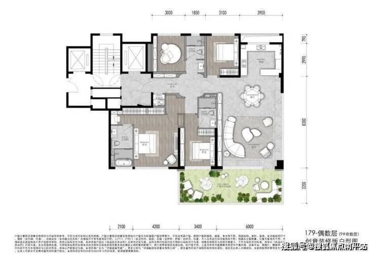 项目高层层高3米,露台挑高6米,小高层高3.1米,露台挑高6.2米