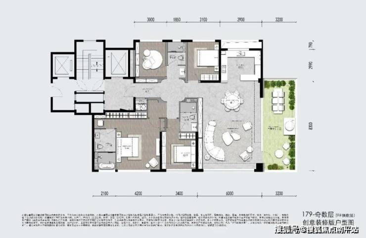 项目户户有露台,采用错层设计,将露台面积控制在一定范围内,没有一味的设计大露台,这样既能保证露台的利用率,还能最大程度的保证采光