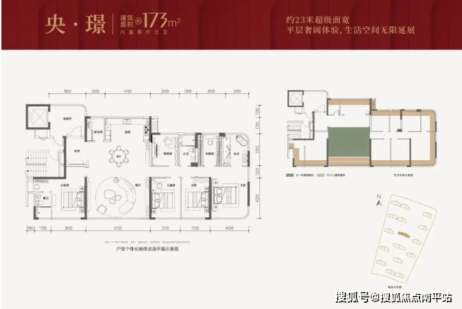 建面约173㎡户型,套内实得面积约200㎡,得房率超115%(不含电梯厅),可媲美旧规230㎡大平层。