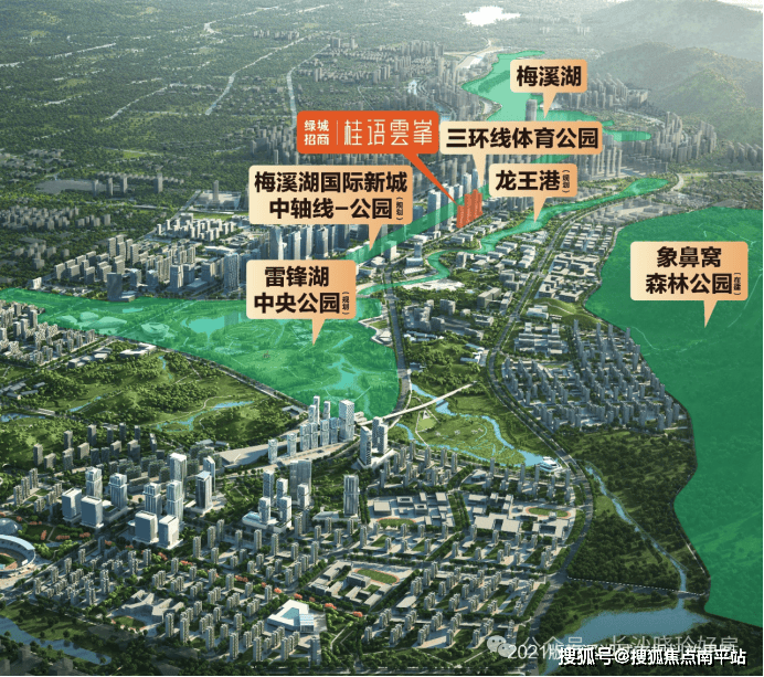 东享约3000亩梅溪湖,西揽约2400亩雷锋湖中央公园(规划)