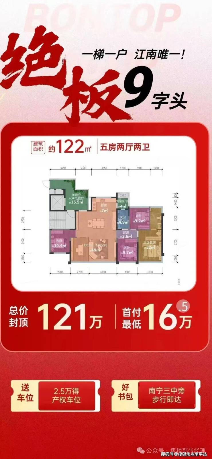 江南邦泰朗境122㎡户型天花板,8字头起,6.7米大横厅,得房率超118%,享入户花园15㎡ 独立电梯厅 !