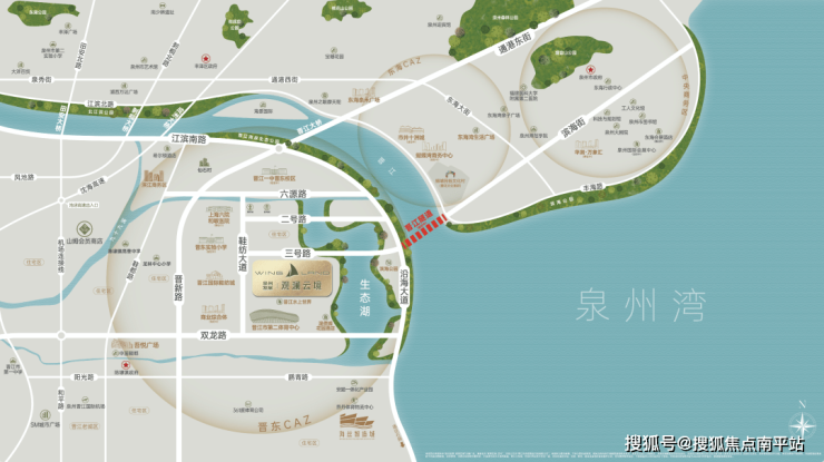 项目所在的晋东板块,是泉州环湾核芯功能区,随着泉州湾区能级的不断提升,这里的规划量级与落地速度持续加码,城市资源正向环湾聚核,晋江二体、上海六院和敏院区(建设中)、晋江隧道(规划中)等高能级城市配套加速推进,集萃了城市繁华与湖海生态的晋东板块,正在成为泉州改善客群的聚集地。