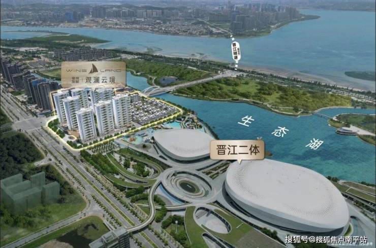 项目南侧即为泉州文娱新地标——晋江二体中心,坐拥“三馆两区一乐园”,涵盖体育馆、游泳馆、全民健身区和戏水乐园,人气虹吸效应强大,为区域带来了足够的活力。