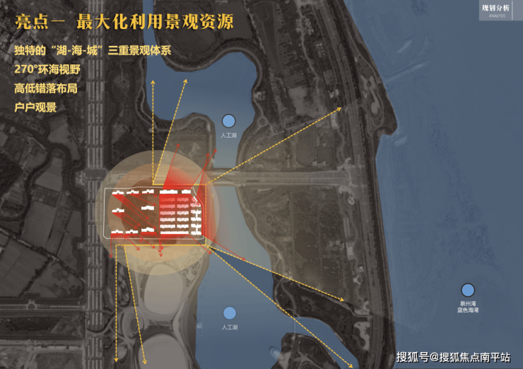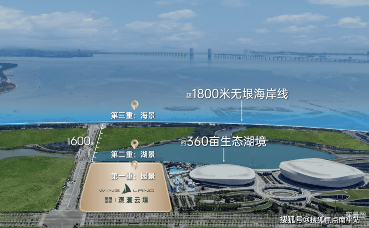 泉州发展·观澜云境一线紧邻约360亩生态湖境及超1800米滨海公园无垠海岸线,项目约600米范围内,覆盖园-湖-海三重景观资源,在繁华之中,贵隐静谧水岸。