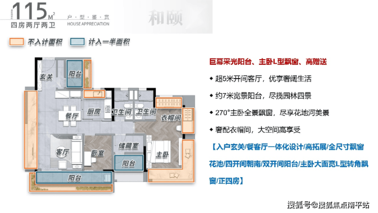 115方,多房朝南厅出大阳台空间感满满,下班放空的好地方,同时空气对流和采光不忧愁,800mL型飘窗额外拓宽功能空间,收纳力拉满,灵活多功能空间,自由组合,满足收纳达人的整理需求