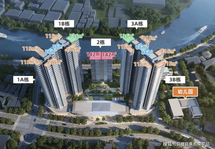 住宅部分,则由1A、1B、3A、3B等四栋31-32层的高层洋房(塔楼),和2、4号楼5-17层高的小高层(板楼)等6栋住宅楼组成。