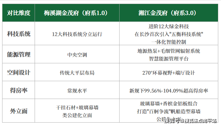 此外,湘江金茂府在建筑新规下实现约99.56%-104.09%的超高得房率,外立面设计演进为具有地域特色的标志性造型,使建筑群成为湘江沿岸的亮丽风景线。