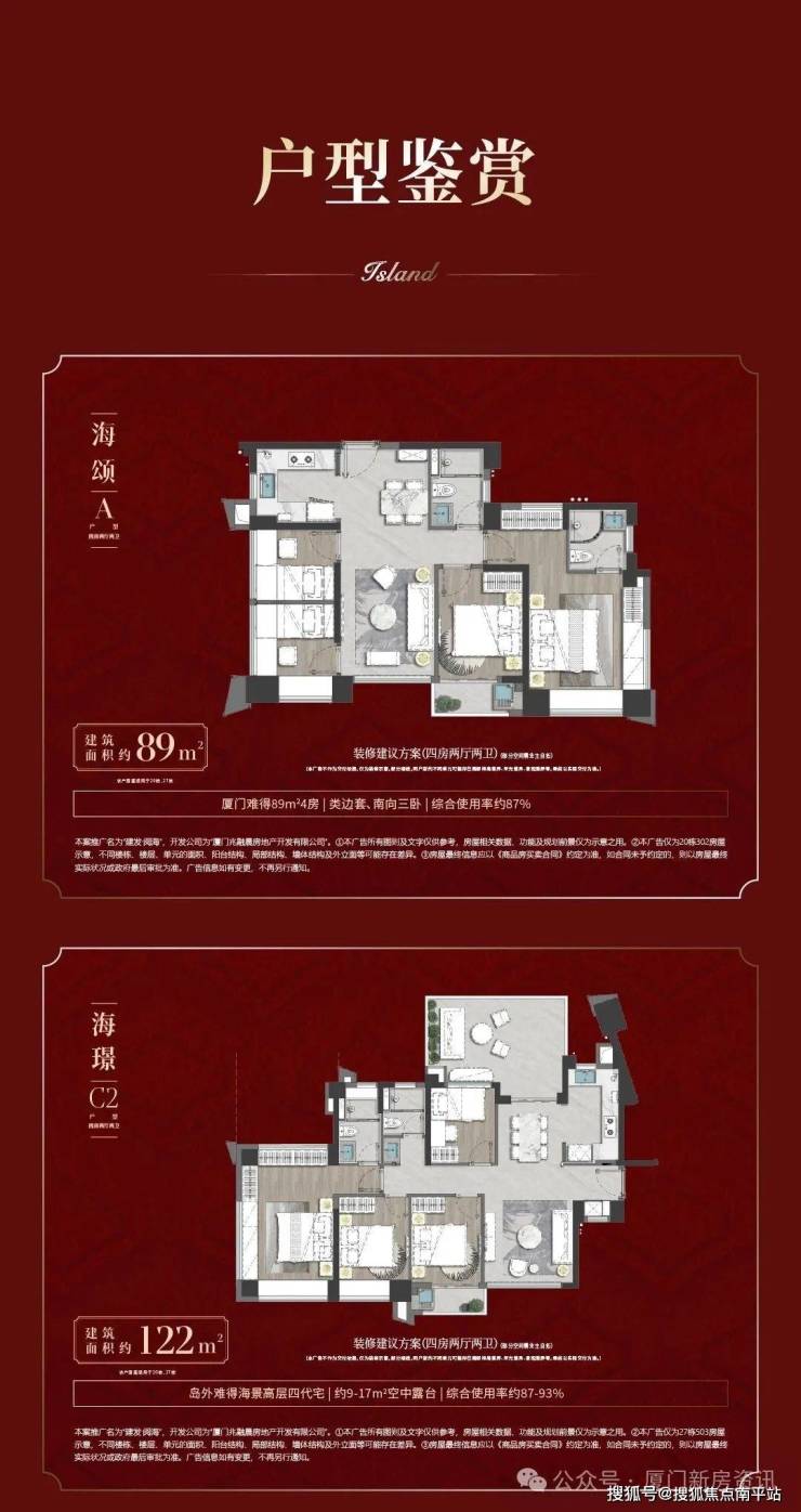 建发阅海瞰海第四代洋房住区位于马銮湾乐活岛,一线临湾、海,直线距离约150米亲海距离。小区仅规划2栋高层、7栋洋房。推售89/122㎡高层,107/125㎡洋房户型,容积率约2.08低密改善住区,高层最大约56米楼间距。