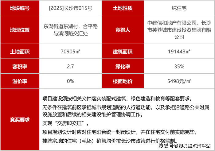 2025年5月7日,中建信和、芙蓉城投联合底价摘得隆平高科片区东湖首发纯住宅地块,项目综合容积率2.7,楼面价达5498元/㎡,以优质教育配套为显著优势,叠加交通通达性、生态宜居性与商业便利性,形成“产城融合”型城市功能单元的标杆性配置。