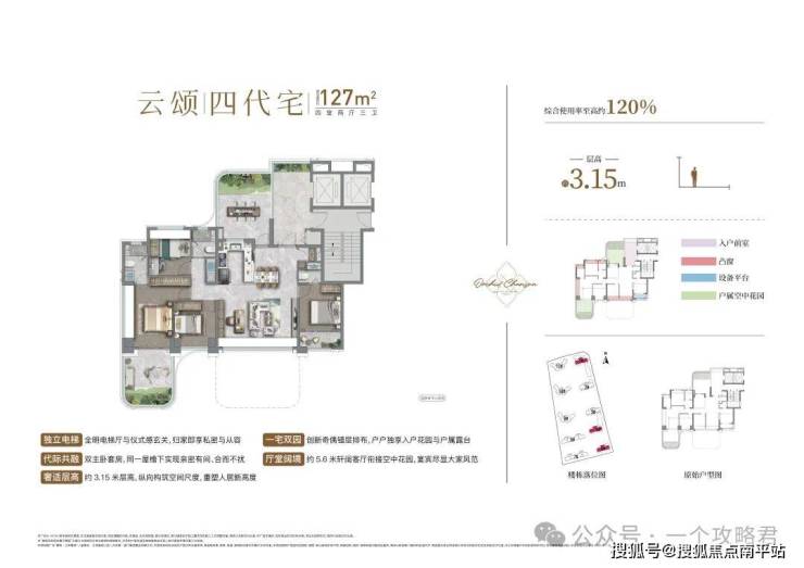 127㎡王炸户型,综合使用率约 120%,3.15 米层高, 两项指标均属全市顶尖水平。
