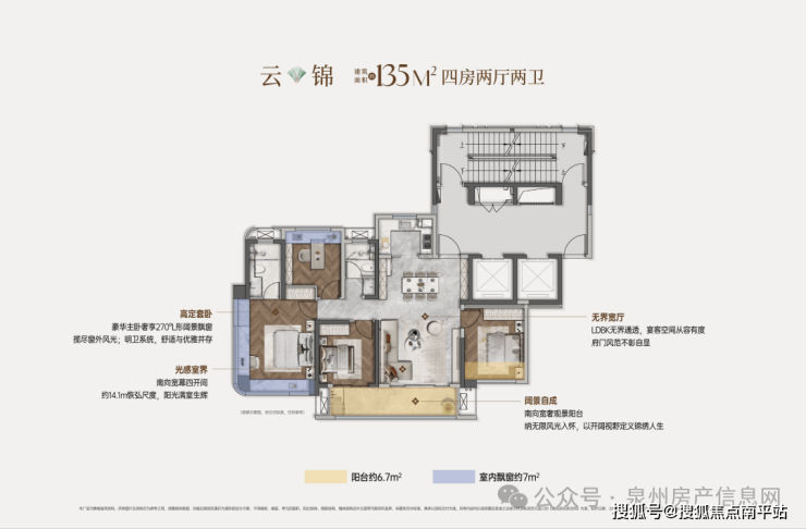 泉州发展·鲤源云府占地面积约95.14亩,规划17栋高层住宅+1栋商业,共905户,容积率2.88,绿地率30%,将打造建面约135-236㎡第四代封面作品,户户尊享建面约38-57㎡空中院,藏纳世家的万般精彩。