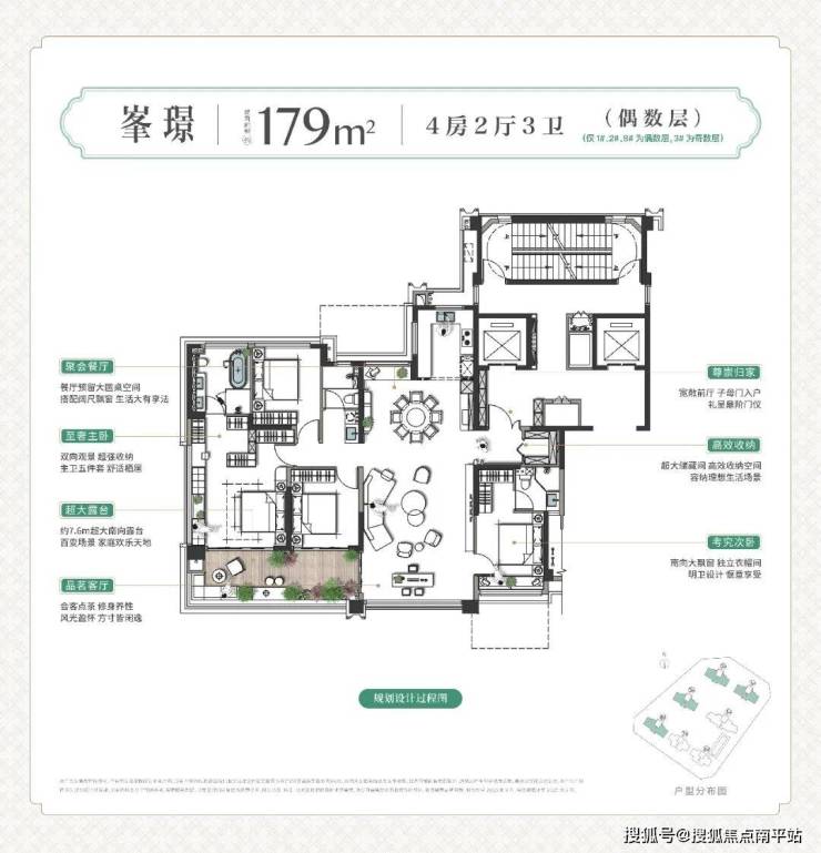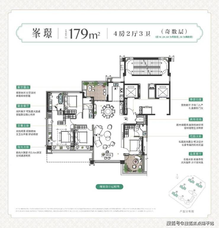 其中,【 奇数层】客厅外延南向 约13.6㎡花园露台,揽双向观景视野;【 偶数层】则拥 前庭后院,一个露台衔接次卧,一个衔接厨房,可同时打造品茗休闲区、运动健身区、花园庭院等多元生活场景。