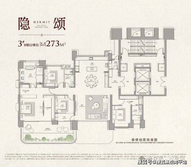 •主打建面约198-575㎡大平层及复式产品,均为第四代生态住宅,户户配置空中花园或露台,部分户型赠送6.8%-20%的露台面积;
