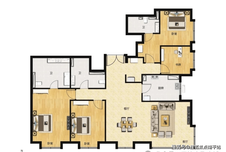 户型设计方正实用,强调动静分区与通透感,配合精装修交付,省去业主后期装修的繁琐。层高2.8米,空间尺度适宜,既不压抑也不浮夸,恰如嘉里一贯的克制与精致。