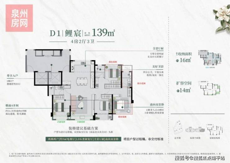 该户型为两梯两户布局,居住更纯粹;入户带 独立玄关、步入式储藏间,同频墅级入户仪式感; U型中西双厨,约6.85米操作台面,互联餐厅,纵享无界食光; 复合大方正厅,无论商务社交、亲朋聚会都尽显排面; 家族式双套卧配置,且分隔较远,互不干扰;豪华 主卧奢配超大双区步入式衣帽间,双台盆+浴缸星级卫浴5件套,以及L型宽景窗,生活直接升舱“顶配模式”,让一步改善有了最优选。