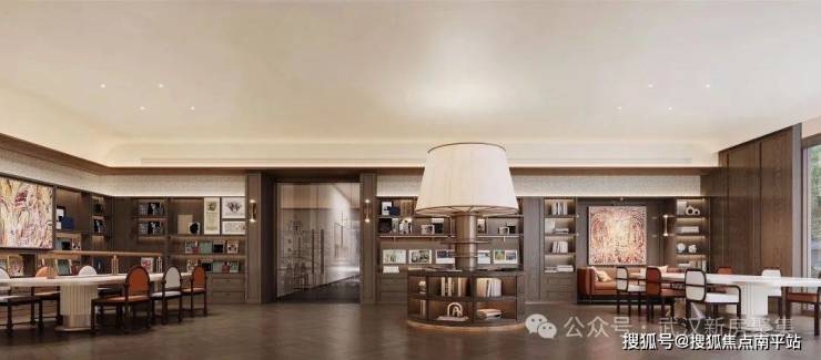 镜面水院倒影建筑美学,风雨连廊串联下沉庭院(叠泉绿台),园林即金融精英的第三会客厅。