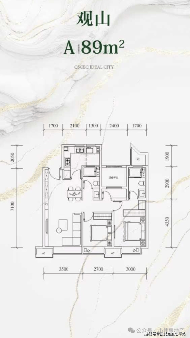 🔥C户型|【高层27F】建面约89㎡ 三室两厅两卫
