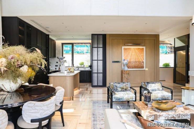 一般来说,普通住宅约3米高,豪宅高出30厘米,约3.3米高。而在项目,首层约3.5米层高,空间感更强,在大面积落地玻璃下,餐客厅区域通透,日常生活更为舒展。