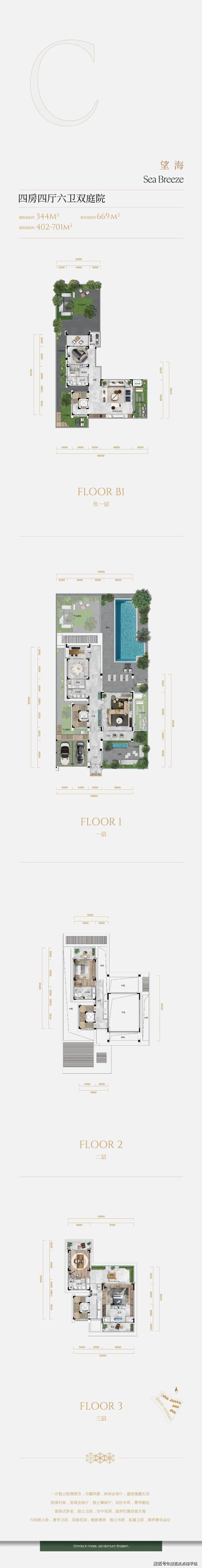 建面约344-445㎡独栋,千平大院的传世藏品。