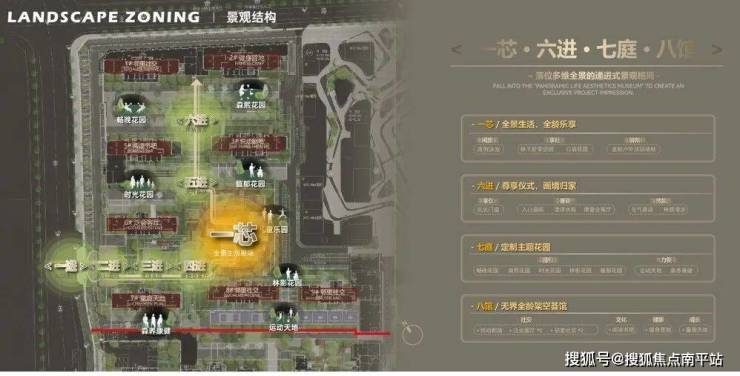 水墨江珊项目总用地面积 约83亩 ,规划建设 12栋高品质住宅 。在空间布局上,项目 以“一芯六进七庭” 为设计理念,构建出一个层次丰富的居住体验: