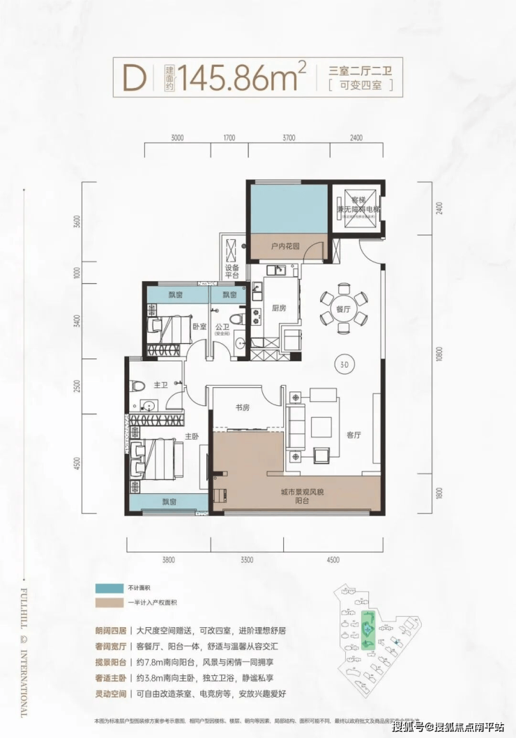三期128-168-177-225㎡D3栋面积:109.89-145.86-197.66㎡