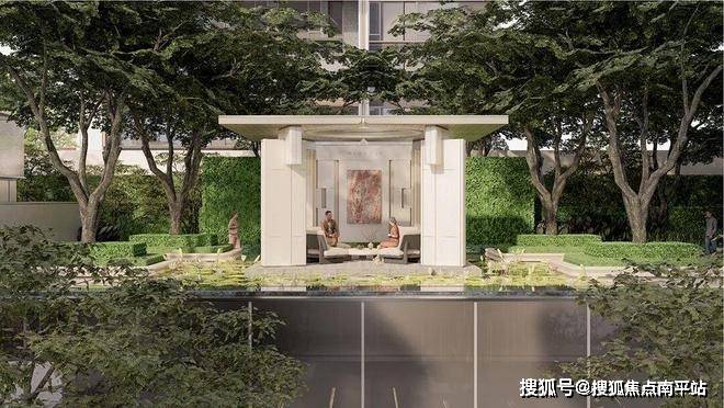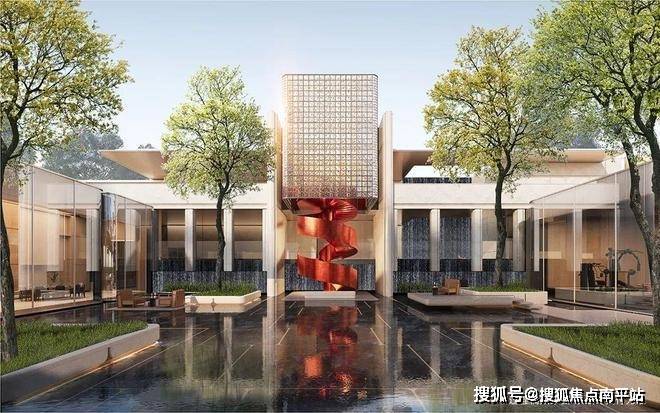 园林景观以莫奈经典之作《睡莲》为灵感,结合泉州文化元素打造神性水院、无界树院等主题园林,打造千万级艺术大师的高定叠水景观。
