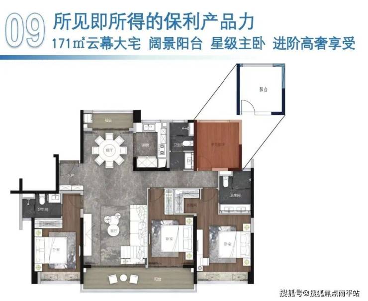 该盘面积选择非常多,从84㎡刚需小三房到172㎡的大平层,丰俭由人。