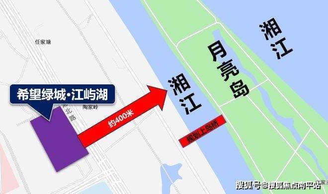从项目到湘江的直线距离,仅约400米,拥有很好的看江角度。