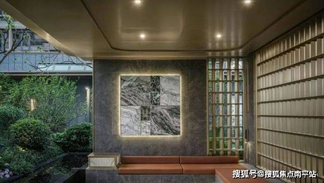 奢华典雅的单元入户大堂,金属铝板,奢石景墙,红枫掩映,归家仪式感拉满。