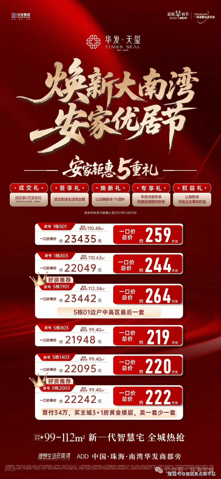 华发天玺,单价2.1万起香洲区新规住宅,99-110平,全新4代宅