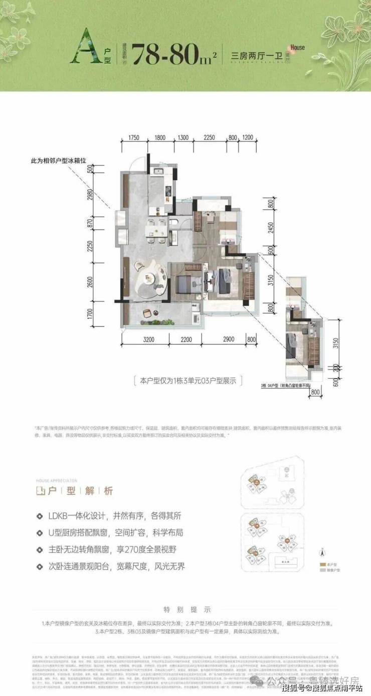 首次推首北地块1栋3单元,约80-92㎡ 3房,共195套,新规使用率高达96%-105%!