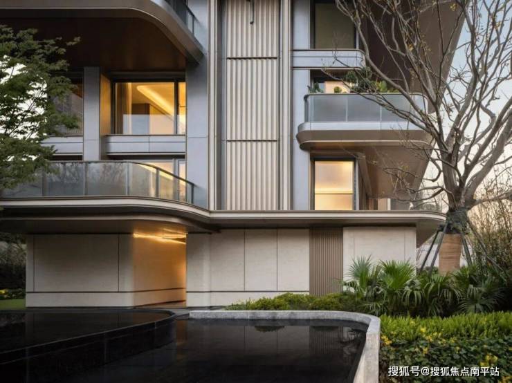 在建筑形态上,以“体块消解”策略回应四代宅的结构需求:露台的错动退台打破建筑刻板轮廓,南立面横向线条呼应秦淮河韵律,北立面垂直构件隐喻紫金山轮廓,使空中庭院成为建筑与自然对话的媒介。这种设计既满足了《住宅项目规范》对绿色建筑的要求,更以全铝板弧形顶的细节处理,让生态理念与美学表达形成统一。