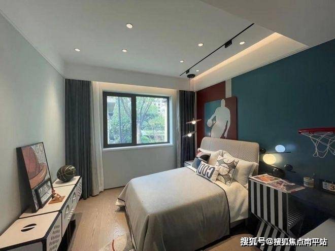 同时因为开间、进深充足,餐厨区域装修自由度较大,样板间内放置一张六人餐桌,但两边的过道依然宽敞。餐厅墙体的长度也呈现宽厅的配置,可做功能划分、收纳柜等设计。