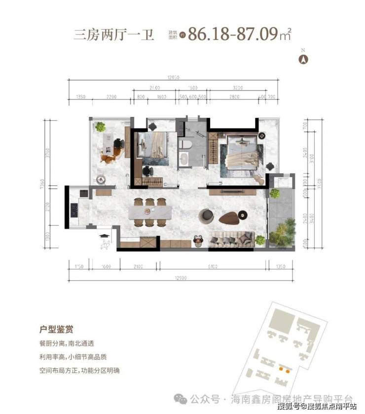 三房两厅 建面约86.18-87.09㎡