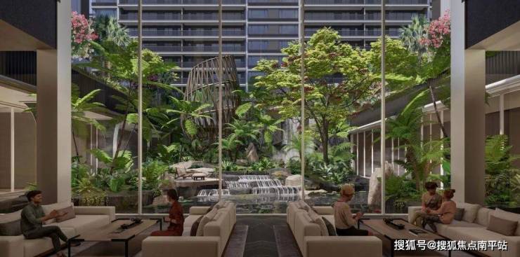 对标新加坡香格里拉 “花园翼”,打造谧境花园。大叶木棉、旅人蕉等热带植被丛生,台地花园、叠水水景、林下花园等多元景观,以五感为引,匠造 “海岛仙山,花园秘境”,让雨林意境融入生活。