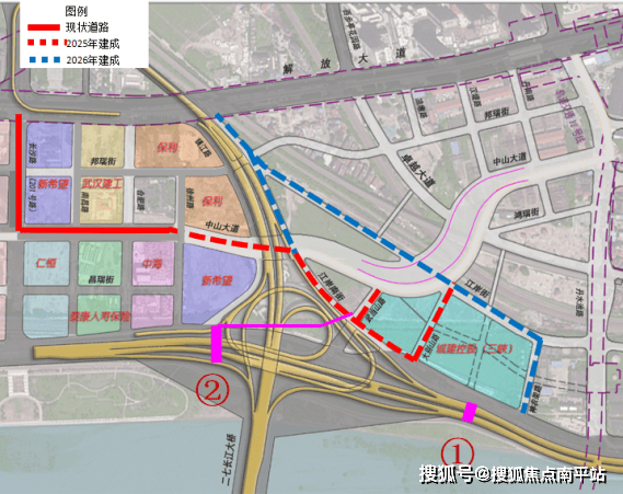 其中,6条市政道路涵盖北侧的江岸街接入解放大道、西南侧的江岸南街接入中山大道,武当山路和大别山路接入江岸南街,以及沿江大道扩宽改造等。未来,将实现江景与城心“一脚油门直达”。