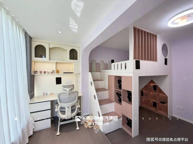 而整个家里最充满童趣的一笔,无疑是女儿房。那个可爱的粉色和奶黄色,它不仅是睡眠的场所,更是一个集学习、玩乐与收纳于一体的梦幻小天地。楼梯下是藏满秘密的“宝库”,书桌前是畅游知识的海洋。