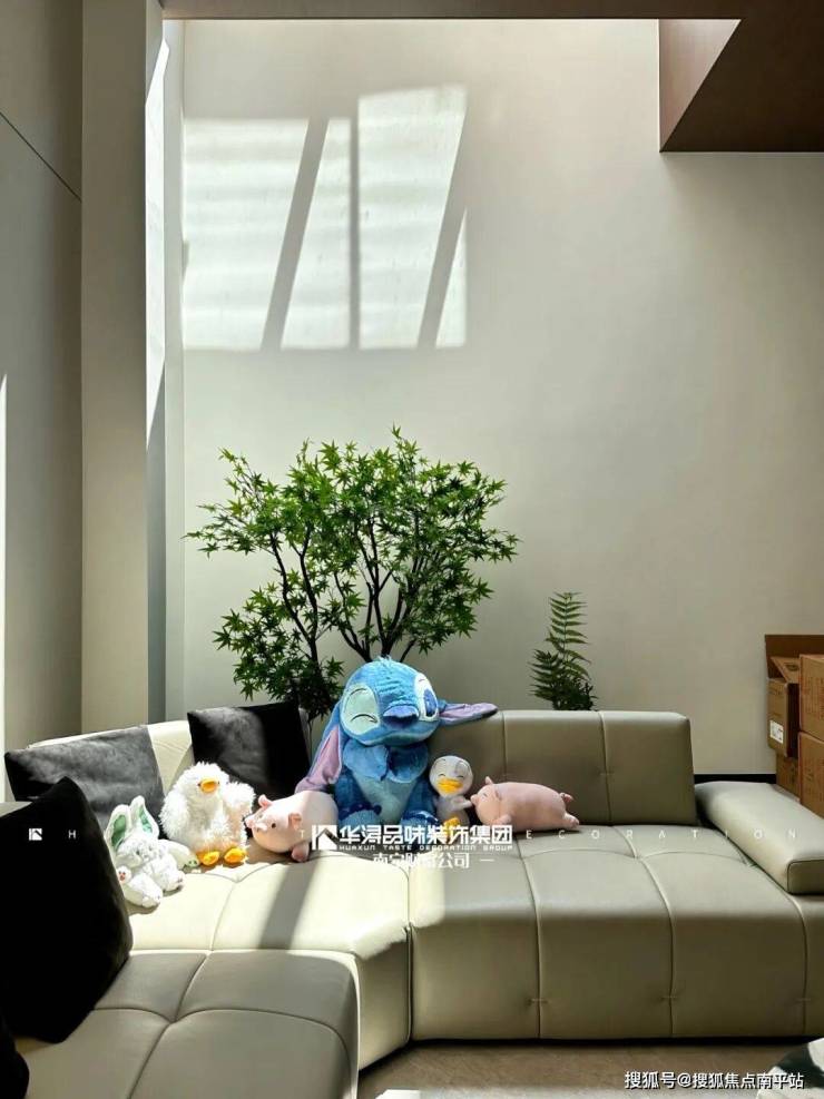 整个公共区域的磅礴感扑面而来。没有墙体切割,家人的互动成了这里最美的风景。