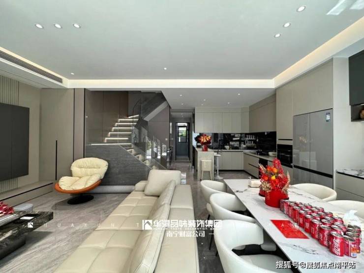 打破界限,让空间为情感服务。开放式的一体化客餐厨,构成了这个家的心脏与灵魂。