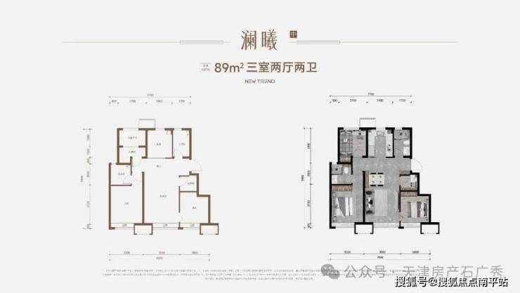 【户型品鉴】澜曦 | 建筑面积约89㎡ 三室两厅两卫 边