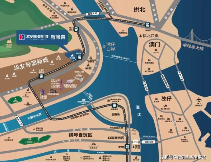 交通便捷:步行 30 米可达城轨湾仔站,可快速抵达拱北、横琴口岸,未来还可步行至澳门,通过港珠澳大桥直达香港。