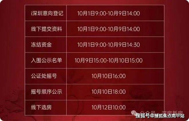 项目实地营销中心和实体楼样板房已经正式开放,已开始i深圳登记,10月9号14:00截止登记,10月10号公证摇号,10月12号开盘选房!
