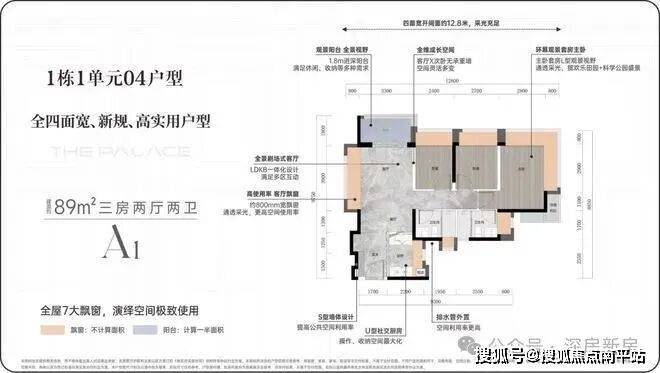 89㎡竖厅动静分区,客厅带3.9*0.8米飘窗,原本3.3米客厅开间秒变4.1米,深圳首创。