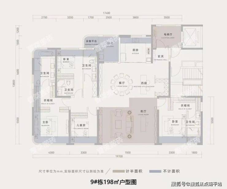9栋28层,两梯两户,3-27层户型面积为198㎡,4+1房,有3个卧室带卫生间,独立电梯前厅,备案价19676-22322元/㎡。此外,28层还有两套住宅,户型面积为275㎡,备案价分别为24472元/㎡和24687元/㎡。