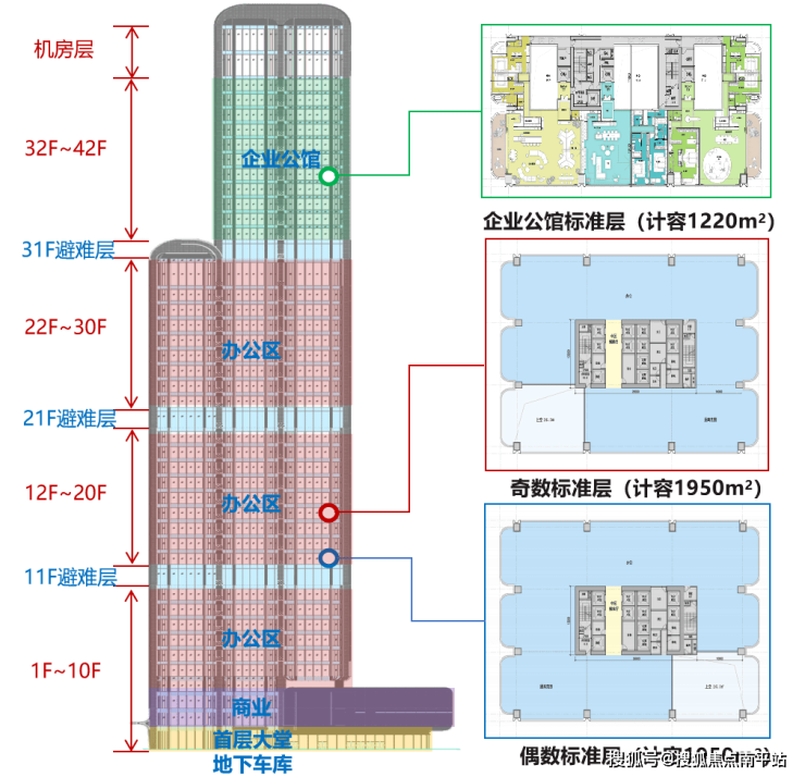 此次取得预售证的楼层,分别在22-29层的办公区,以及32-41层的企业公馆。