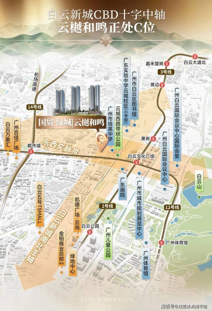 项目刚好卡在白云新城重点发展的北区,十字中轴的核心交点。东西向串起生态文化带,南北向打通产业商业动脉。