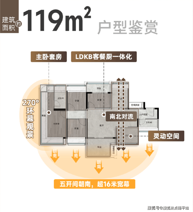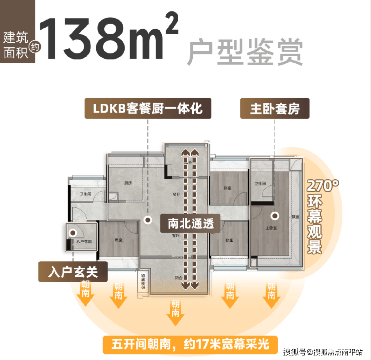 全屋做到了南向约17米五开间,北面几乎全开窗,采光通透明亮。
